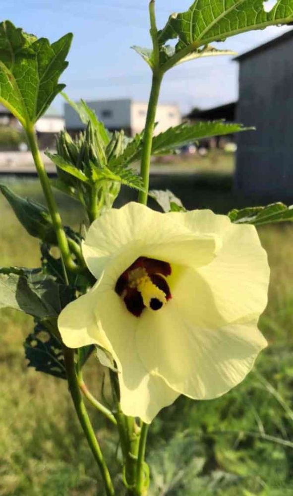 野菜のお花の中でも、オクラの花の美しさはNo.1かもですね〜(^^)