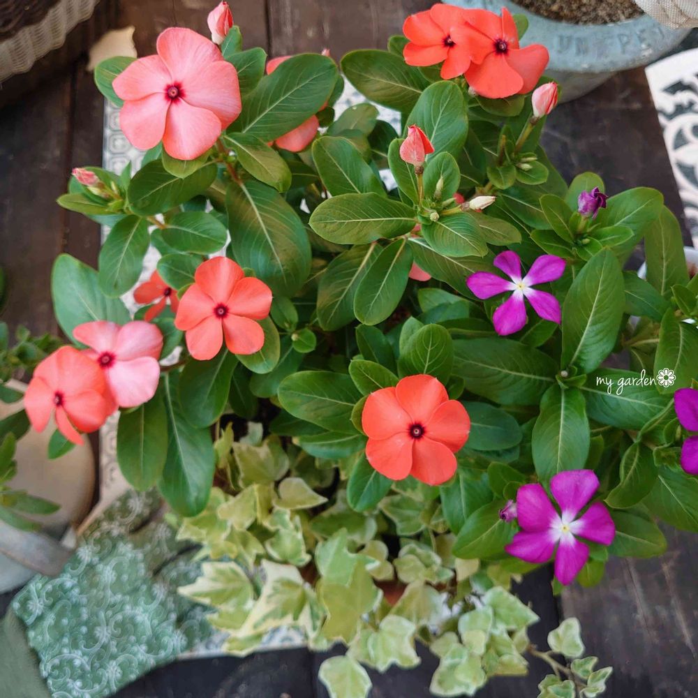 鉢増ししたかった日々草2つを寄せ植えにしてみました☻