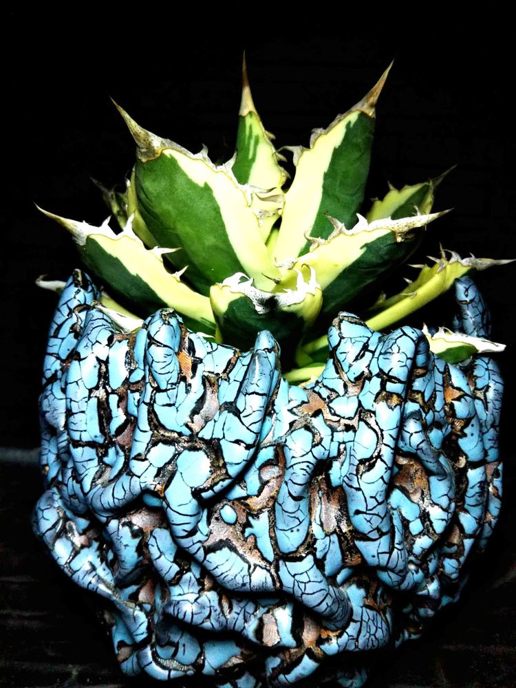 アガベの素敵さにいつもウットリしてるfumi fumiもですが💕このTurquoiseblueの鉢の素敵さに目がテン‼️👏👏👏👏フォルムも好き💕⤴️
