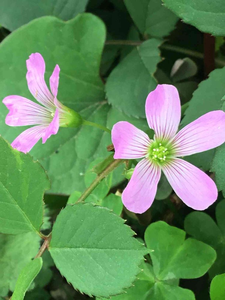 庭の片隅にちょこんと可愛らしいムラサキカタバミの花。