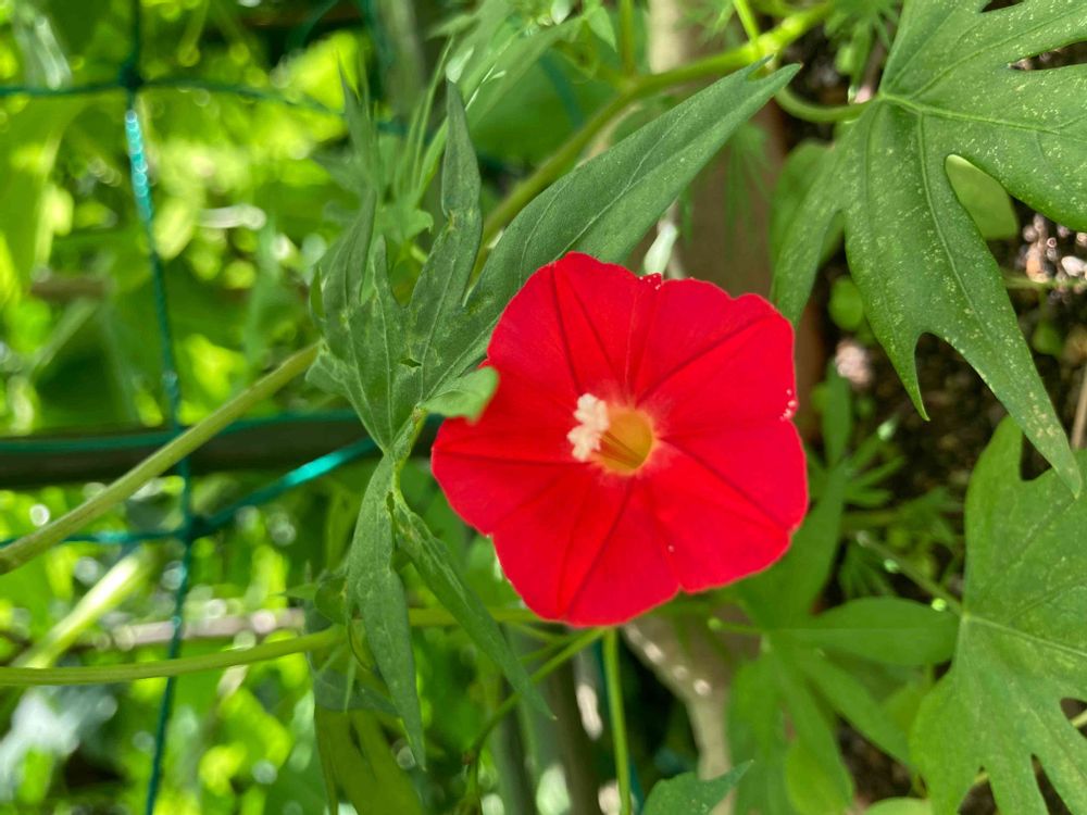 真っ赤な朝顔意外と見ないかも。綺麗ですね!