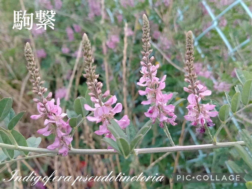 学名のIndigoferaは、Indigo(藍色)+fera(有する)、pseudotinctoriaは、pseudo(偽の)+tinctoria(台湾コマツナギ)で、同属の台湾コマツナギや南蛮コマツナギはインディゴ(藍色の染料)が採れるが、日本のコマツナギは染料が採れないので、この名があります。トウコマツナギと同種とする見解があります。