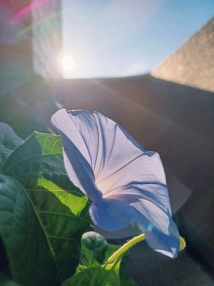 娘が種を植えた朝顔、やっとこさ花が咲きました🎵