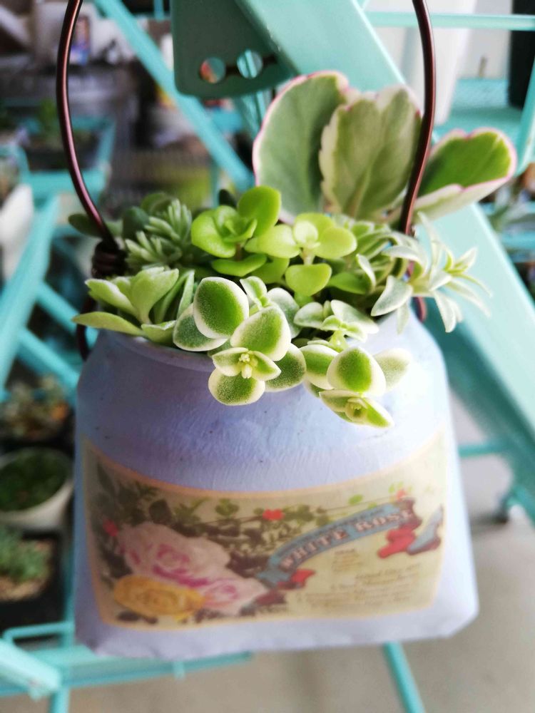 それにしても毎日暑い☀️😵💦リメ缶バッグ作りに挑戦したりしてます🍀セダムをちまちま寄せ植えしてみたよ💖