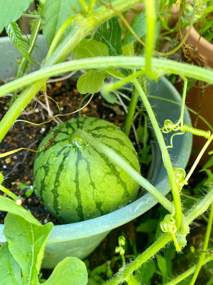 ツルも伸びるけど、ベランダでもできそうですよ〜🍉
