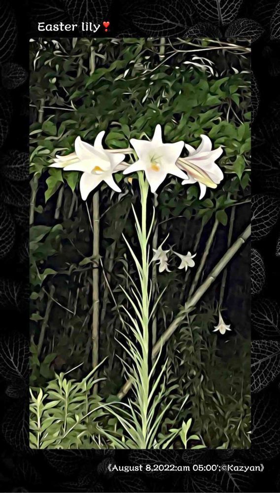 📝直ぐ近所の公民館の沿道にある竹林の傍らに咲いていた高砂百合の花が満開でスラッとして、吾輩と同じ位で約1m75cmの背丈で立ち伸びて咲いていました🐶