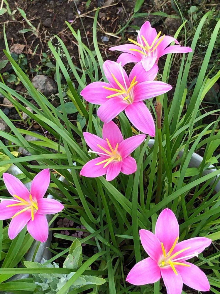 お早うございます〜🙇 とても素敵な!レインリリー毎日がカンカンデリで!名前のように雨が少し欲しいですね〜!! 5人並んで楽しそう😅💐これからも素晴らしい花楽しませて下さい!!🙎