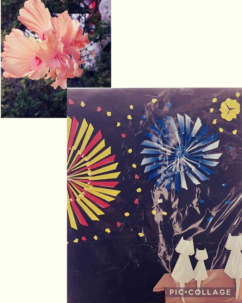 それが最後の花火だったみたいで、実物は撮せなかったので、職場の入居者の方の折り紙作品の花火🎆で。