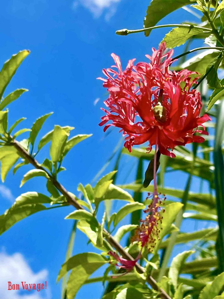 空とのコラボ、揺れるハイビスカス🌺とても良い感じです❤️