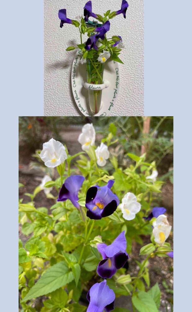 庭のあちこちに咲いている紫のトレニアに白をプラスしました。こちらも来年は増えてくれるかな?