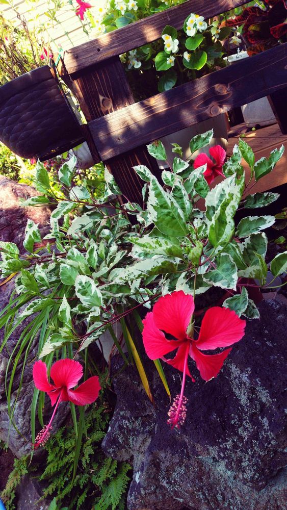 猛暑の中、斑入りハイビスカスが咲いてくれました❗️