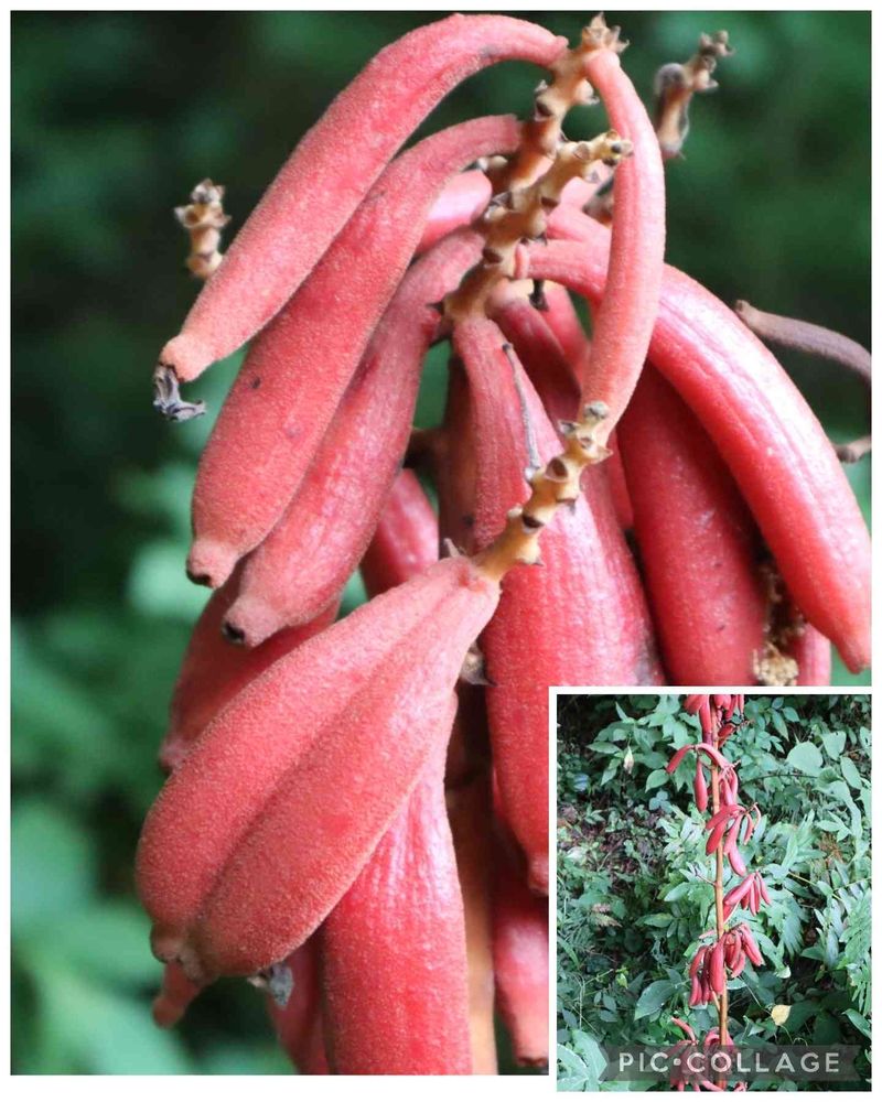あいさん こんにちはツチアケビはじめて見ました。絶滅危惧種だそう、四国のカルストに有るとの事、会いに行きたいです。赤ウインナー、赤い小バナナ不思議です🤗ハイジ