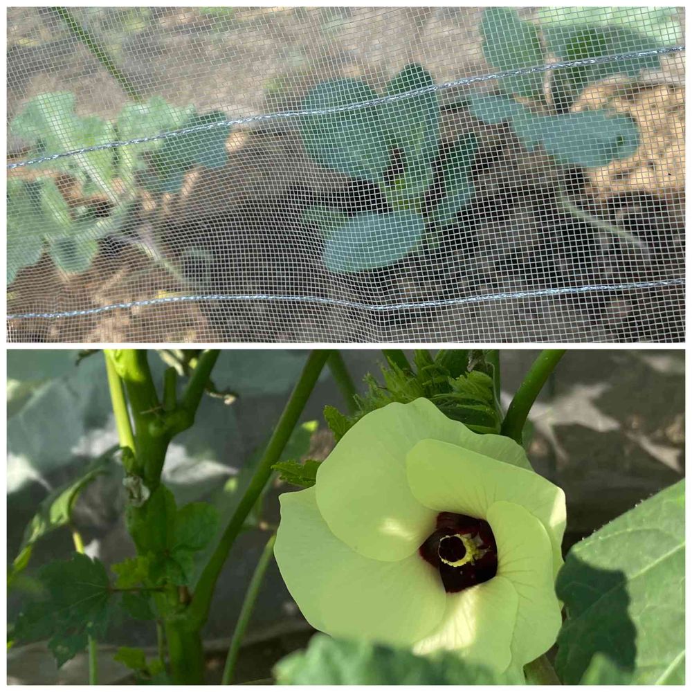 お疲れ様です🍀暑い毎日、野菜達を守るのも大変ですね💦 島オクラの花初めて見ました🌼すっごく爽やかで可愛いんですね🥰💕