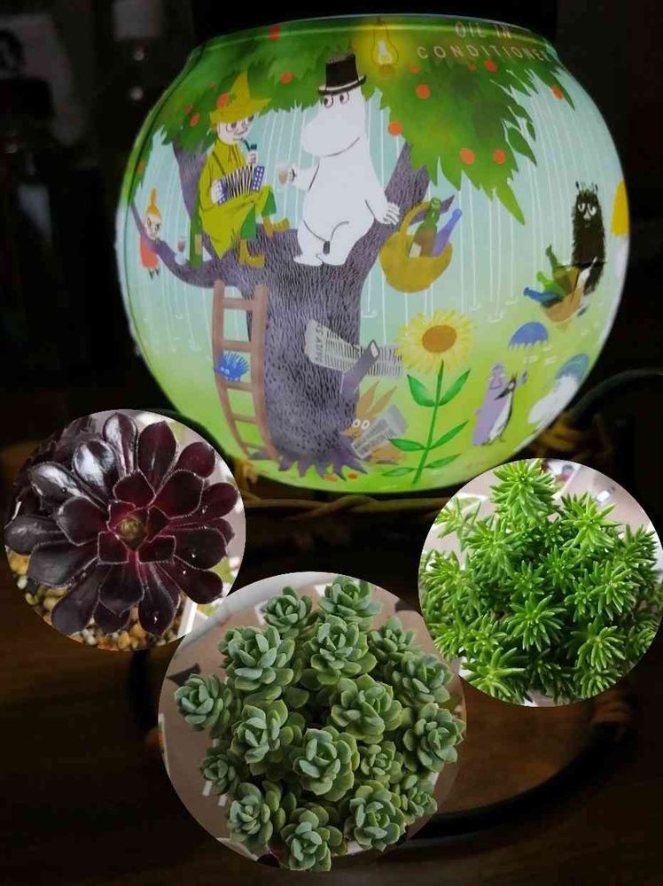 ムーミンのライトはコンディショナーのフィルムをガラスの器に貼って作りました✨