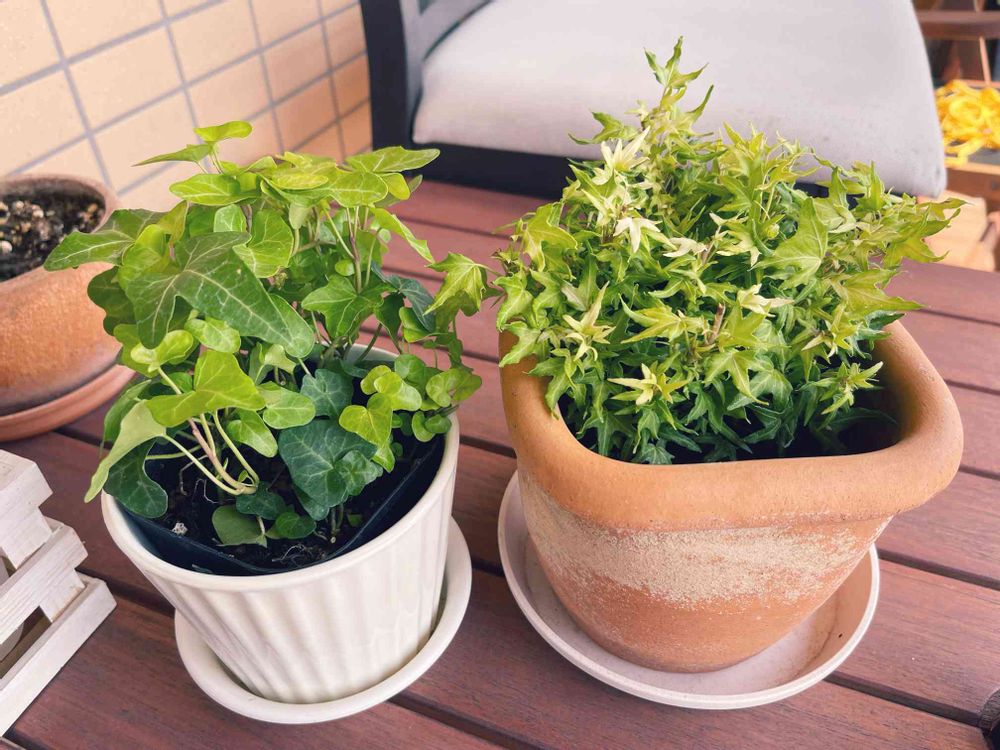初めて行ったグリーンショップに、色んな種類のへデラが売っていたので、2種類お持ち帰りしてみました。