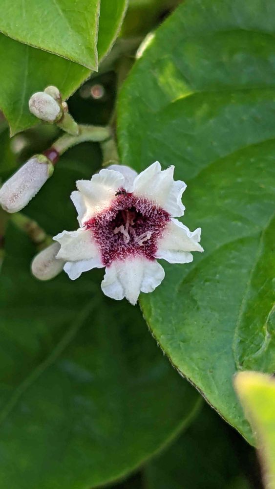 駐車場脇の畑のフェンスでイキイキと咲いていた❗鮮やかなツートンカラーの可愛い〜花🌳🌲🌴