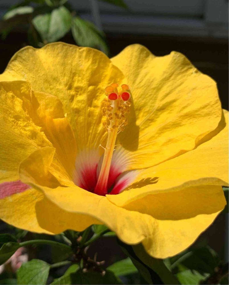 トモさんちの黄色いハイビスカス🌺いつも投稿でキレイだなぁと思って見てましたが、ナマで見ると感動でした✨