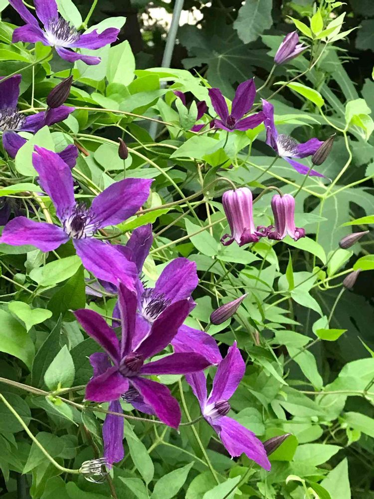 同色のクレマチスさん同士のコラボも素敵ですね🥰