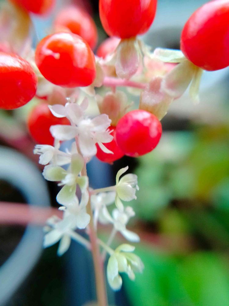 ジュズサンゴの実も花も瑞瑞しく透明感があり、ことばにならないほど....🍎💮