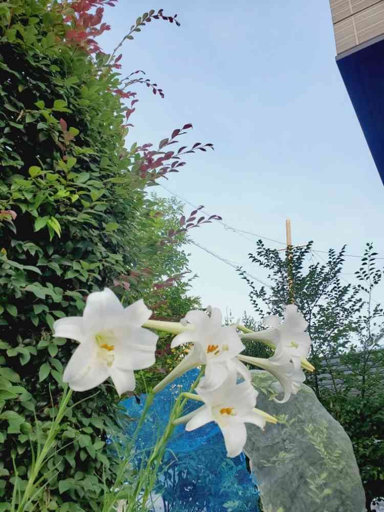 今朝の散歩でご近所さんのお庭で咲いてた山百合です。