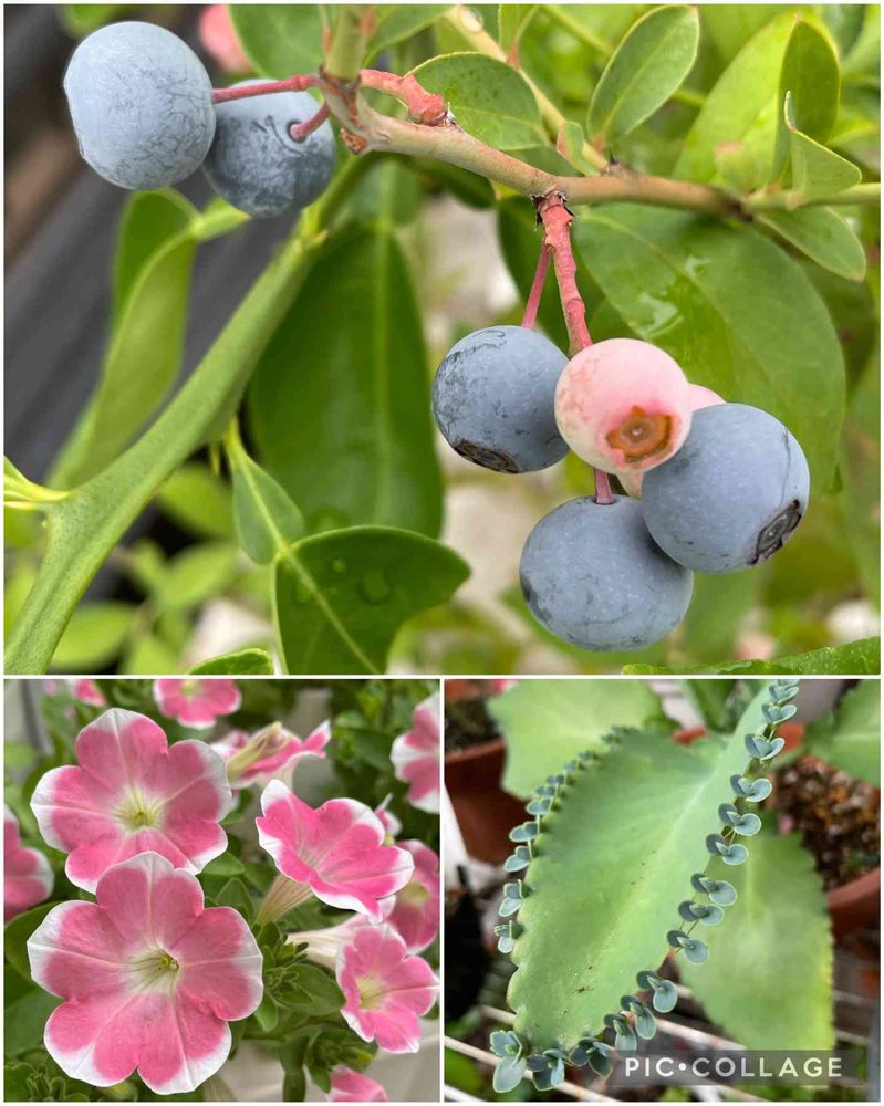 ベランダの温度はかなりですが、強くて元気な子たち😊🫐🌸🪴