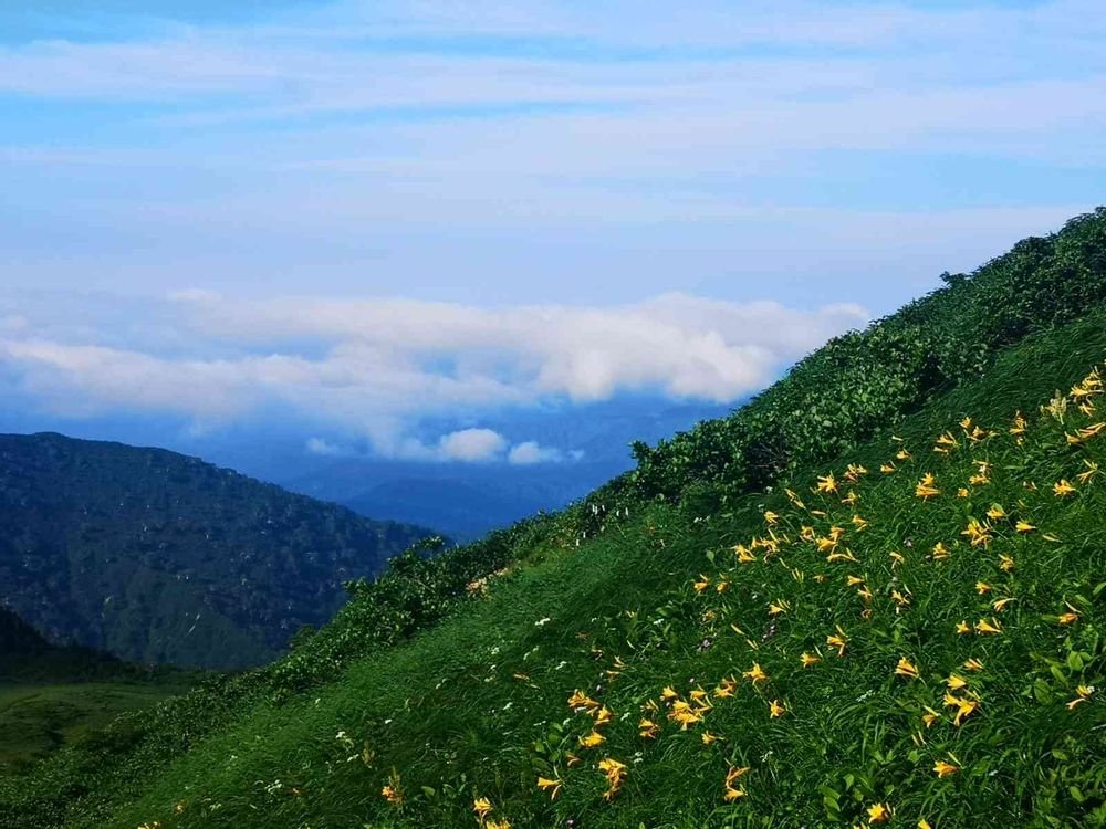 ニッコウキスゲが咲き乱れていました。今シーズンは雄国沼から始まって白馬岳大縦走、白山とニッコウキスゲにたくさんたくさん出逢いました😃🎶😃🎶