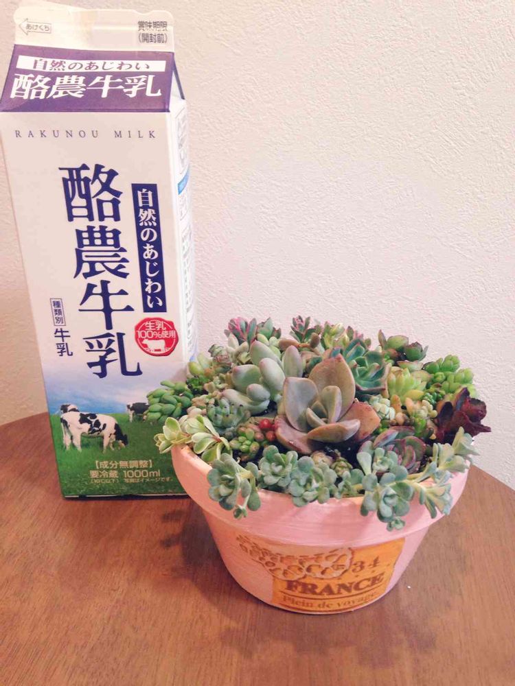 いきなり失礼します。寄せ植え可愛いです。私もこの牛乳飲みます。普段脳にすり込まれた物が目に飛び込んでくると反応しちゃんですね。