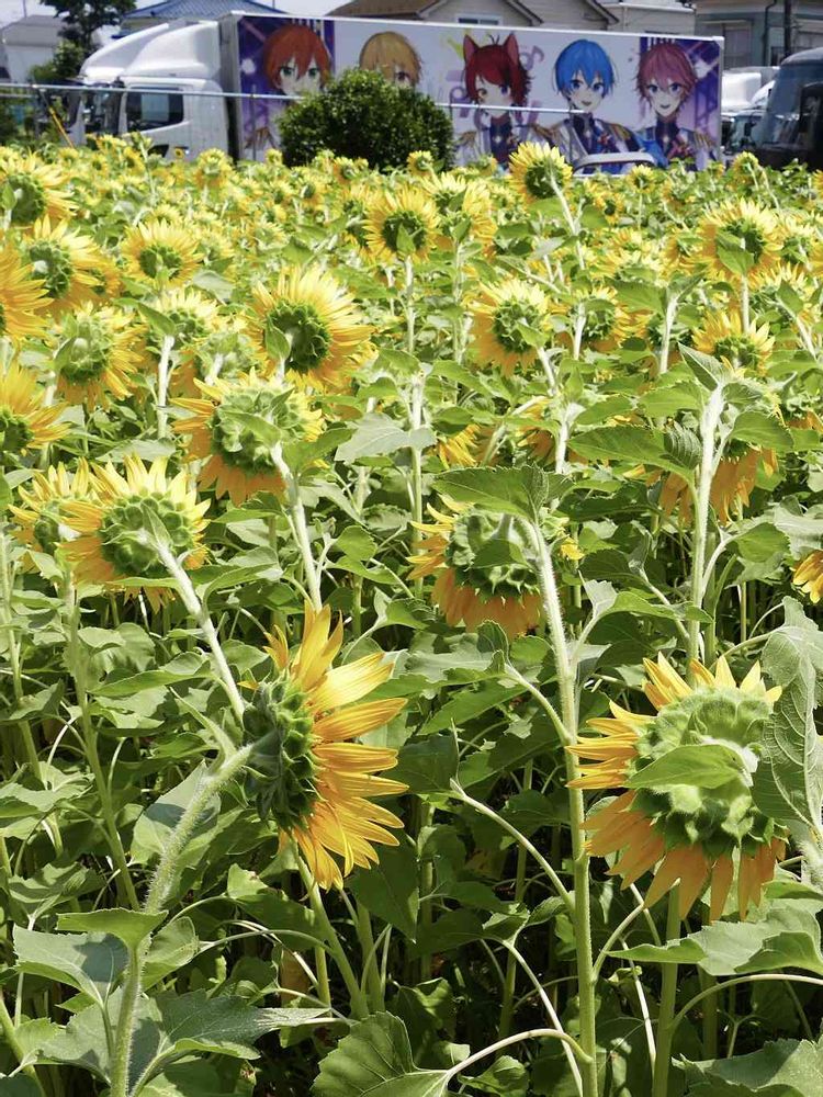 太陽ではなく、コマーシャルカーに向かって咲く向日葵🌻