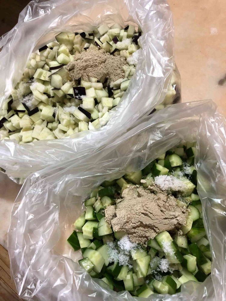 キューリ3本と茄子🍆1本を賽の目に。