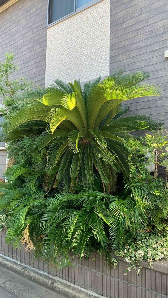 今日の仕事先の玄関前のソテツが1年ぶりに見たらこんな大きくなってた😱ソテツの育つスピードがゆうがベランダで育ててるレベルじゃない😅💦