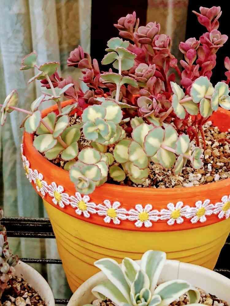 ビタミンカラーのリメ鉢可愛い😍❤️
