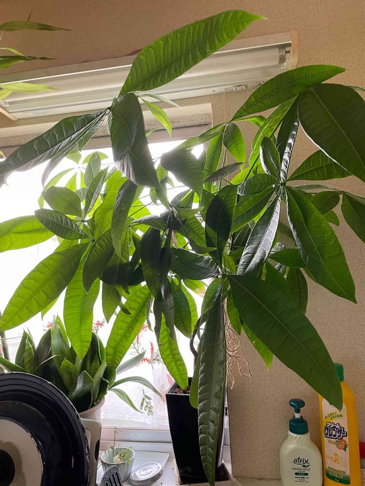 1年前に100均で買ったパキラがエラい事に…葉っぱの大きさが半端ない!