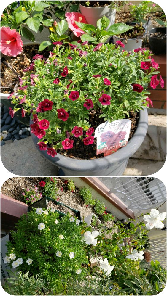あやめさんの小さな庭,ハイビスカス ヘップバーンホワイト,スーパーベル ダブルレッドの投稿画像