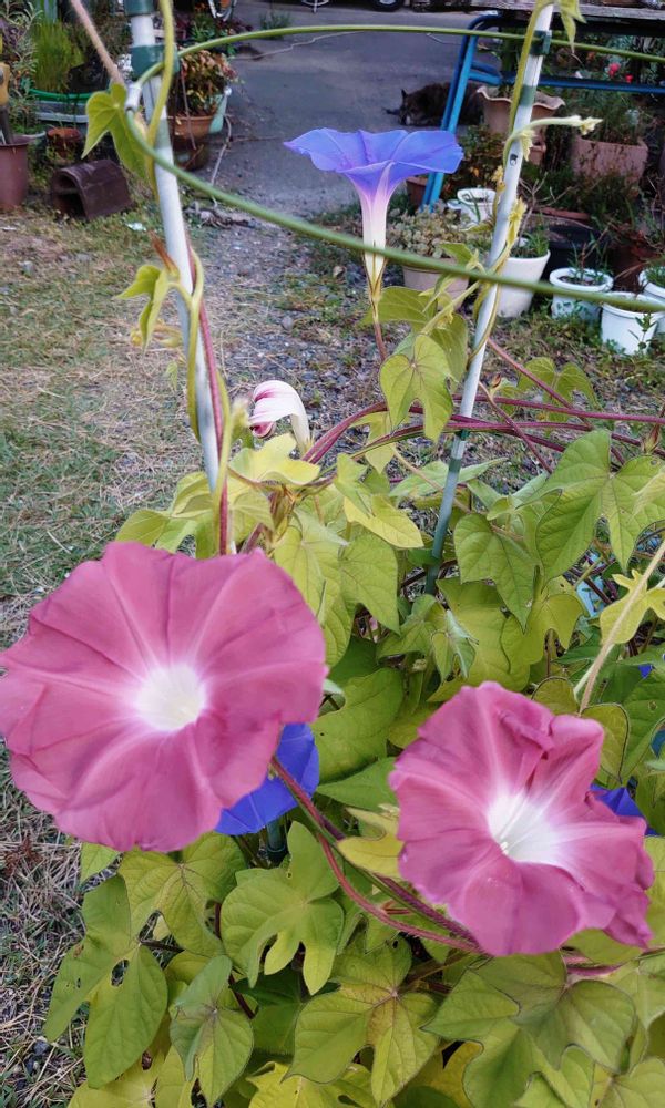 ブルーのアサガオも一緒に咲いちゃったから種とるのに困るよね🤭