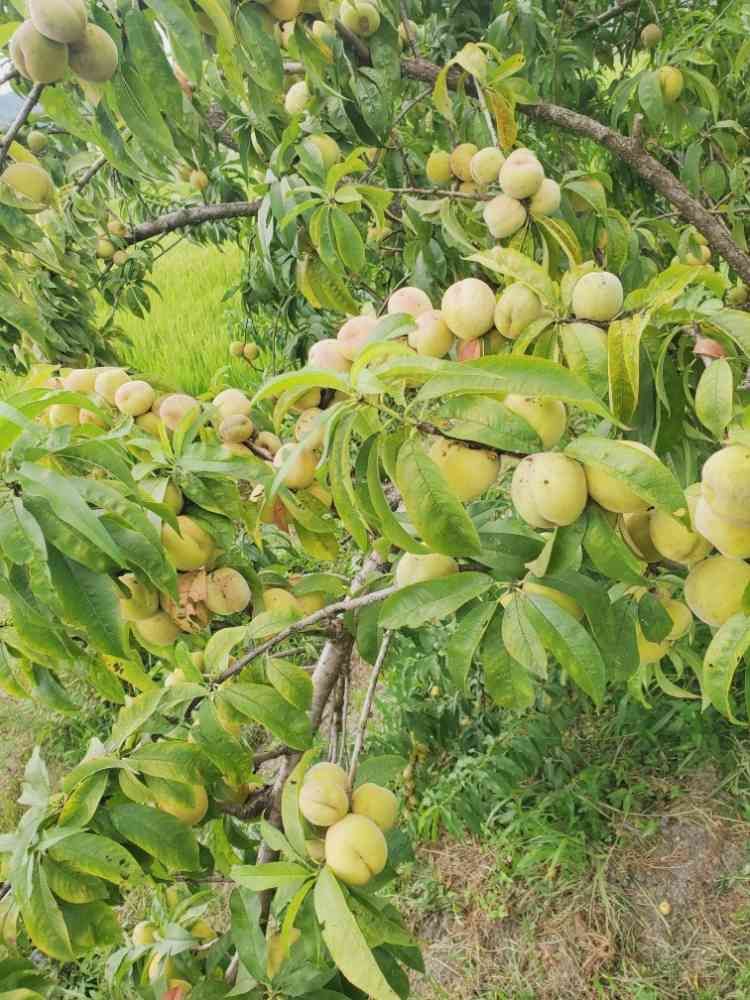 集落の桃畑でたわわになってる出荷できないとりのエサ?