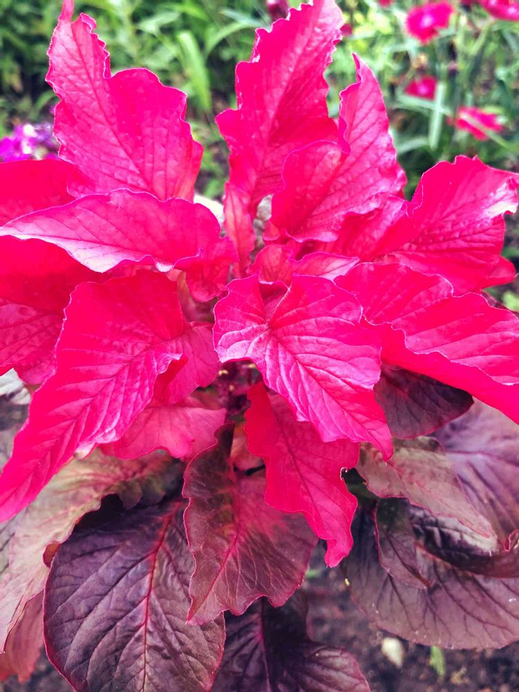 今年、購入した葉鶏頭(ハゲイトウ)は、2種類。前回は黄色地に赤色が入るものでした。今回は銅色に先端が真っ赤です。葉っぱを楽しむ意味では、庭に彩りを添えてくれています。しかも暑さや雨に強く、来年もまた会いたくなりました。