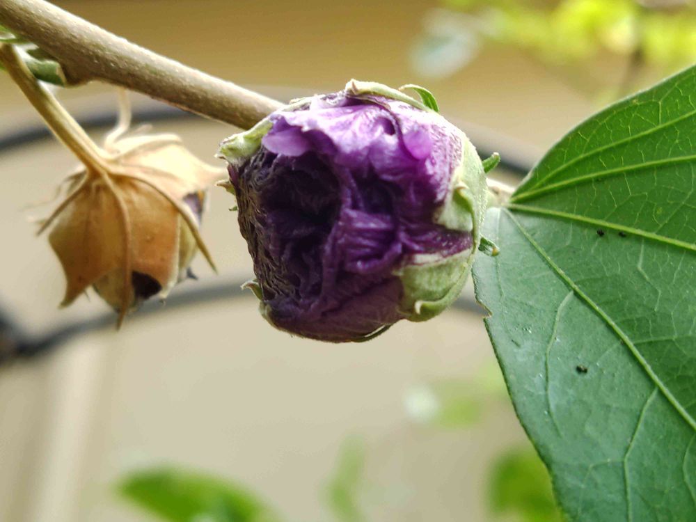 いくら日陰とは言え咲かないし散った様子もないと思っていた木槿。