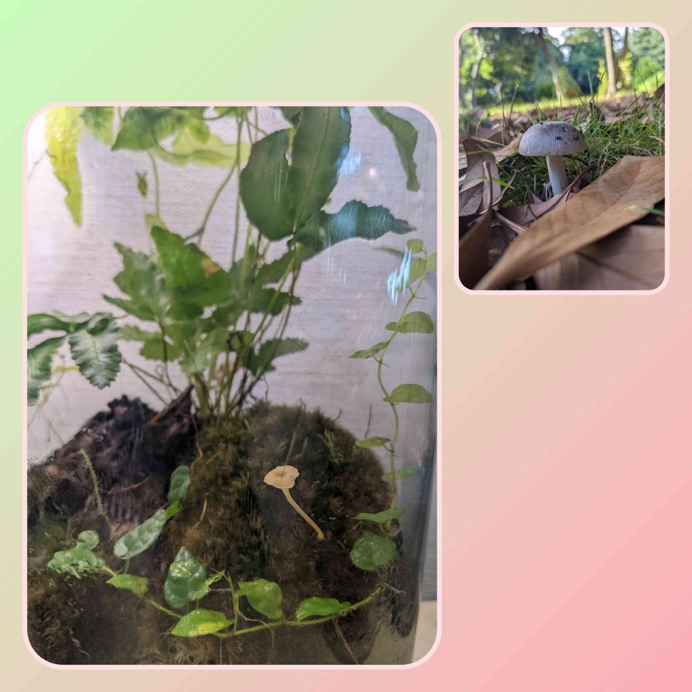 放置していた苔リウム、キノコ生えてるやん∑( ◦д⊙)‼