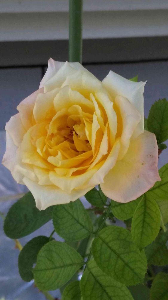 我が家のバラ「シャコック」のお花が開いてきました。オレンジ色🧡が暑さで薄黄色💛になったかな?🌼🌿🌞💦
