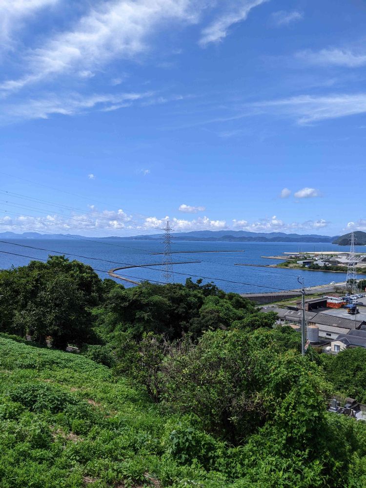 歩きで、家から、ほんの少し離れた自宅の墓掃除の帰り道、きたみちより、遠回りしたら、高台よりこの風景が望めます。自宅からも海は見えますが、場所違えたら、もっといい場所に出会えます。