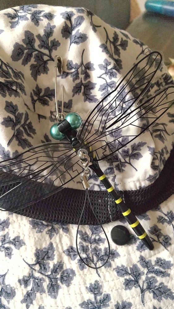 今朝、昨日届いた“おにやんま君”を帽子に付けて庭仕事をしました。蚊🦟が全然来なくて快適でしたよ😃😃