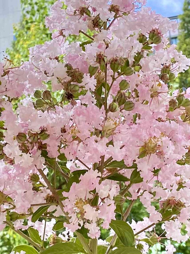 お隣さんのお庭のサルスベリも濃いピンクのほうです😄