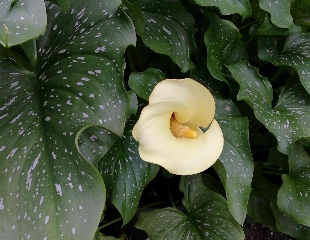 カラー3輪目咲きました。影に隠れていて気付くの遅かった‼️可愛く咲いていました。