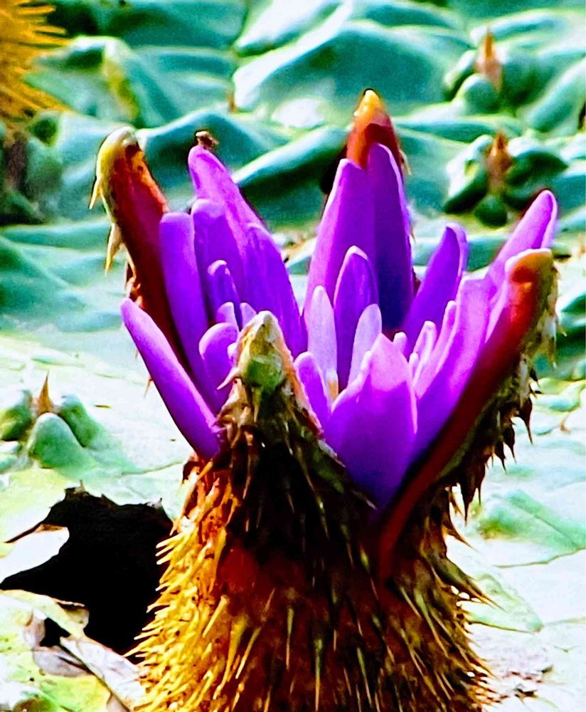 大きな蓮の葉に比べて、花は小さくアップで撮りました。