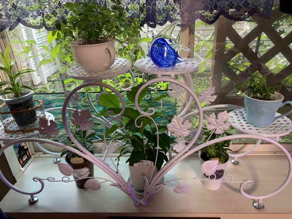 リビングの出窓の仲間達です💐息子に買ってもらったフラワースタンドすてきでしょ❤️