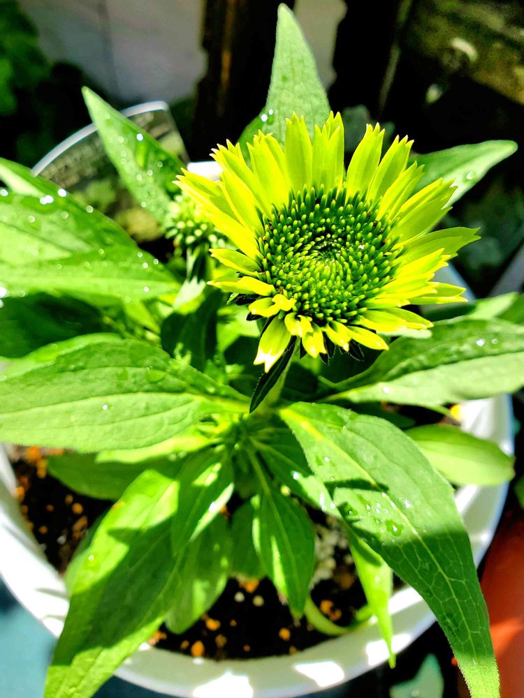 エキナセアグリーンジュエル蕾が固い状態でお迎えしたのがようやく咲いてくれました~🎵😍🎵