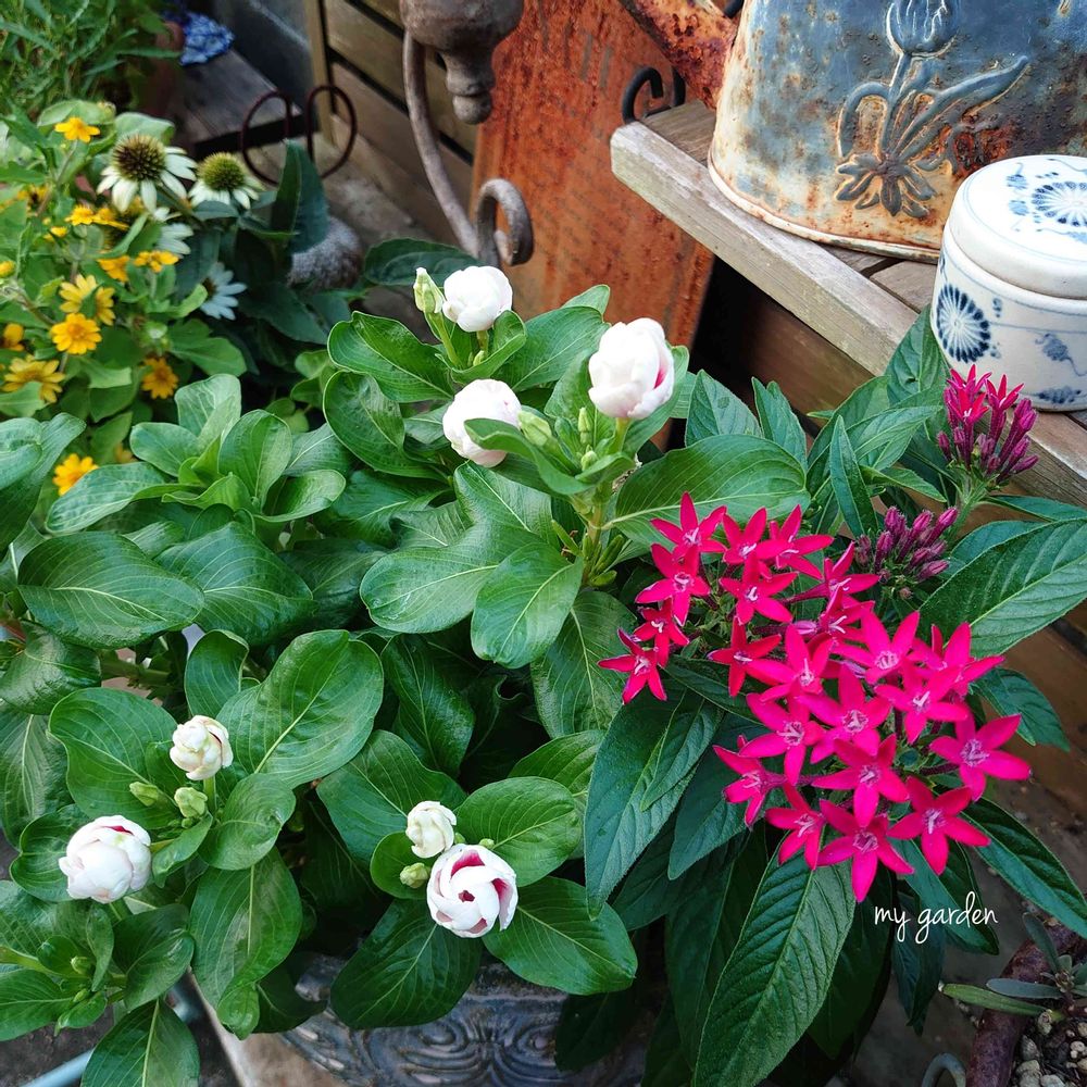 ニチニチソウmikiとペンタスの寄せ植えです✾