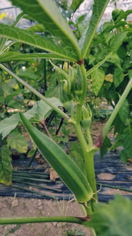 今年はジャンボオクラを蒔きました🍀発芽後、腐ってしまう物も多く心配😟しましたが、その後順調に育ってくれました😆