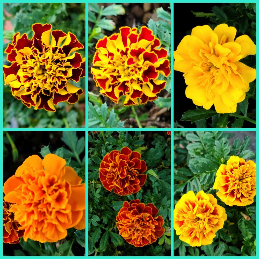 プランターにこれだけの色のマリーゴールド