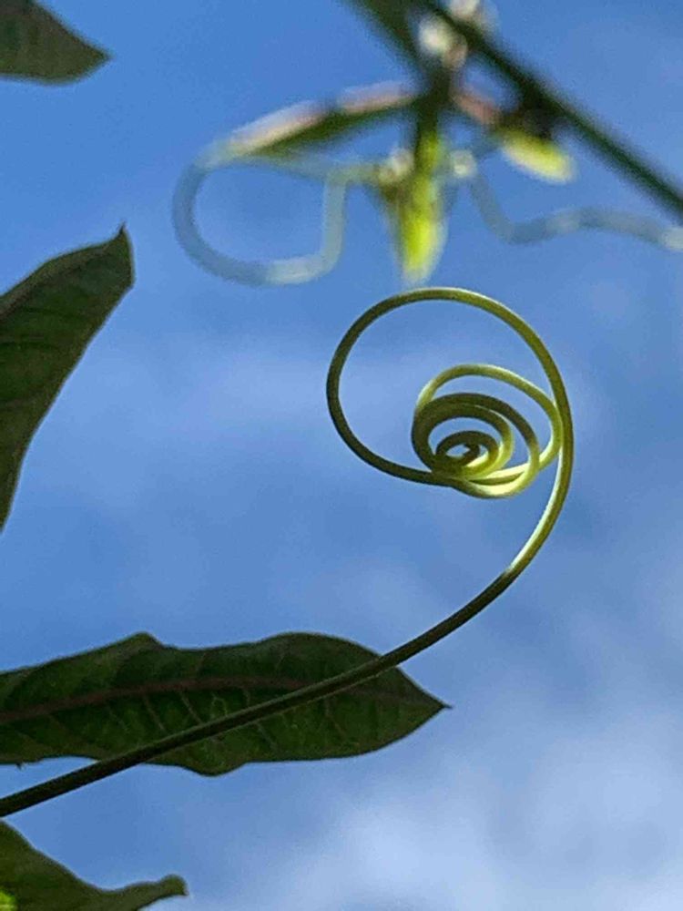 青空にクルクルと伸びる時計草が、